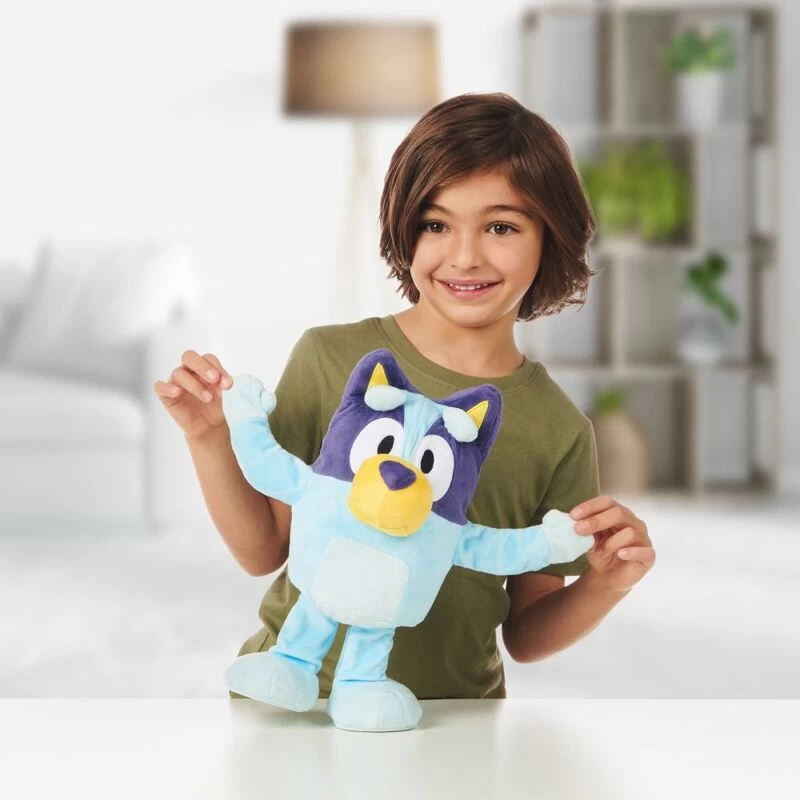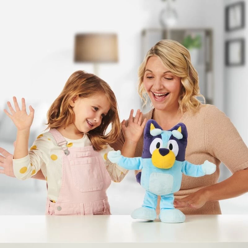 Play along with Bluey as she hops, waves and dances! Then join the fun for games, songs and more – For real life! Dance And Play Bluey is a fun animated Plush toy with over 55 phrases!