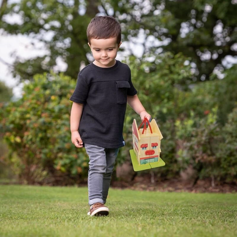 Resembling the iconic Heeler House from the show, this Bluey Carry Along House will allow little ones to transport Bluey and her family anywhere! This cleverly designed portable activity set features a 15 piece puzzle mat which provides the perfect surface for children to play out their own Bluey scenes with the six 3D figures. Decorate the puzzle mat with character and prop cut outs from the packaging. When finished, children can simply pack up and take the fun with them, making this a great gift idea for Bluey fans! The Bluey Carry Along House is made from responsibly sourced materials, the wooden products are certified by the FSC.