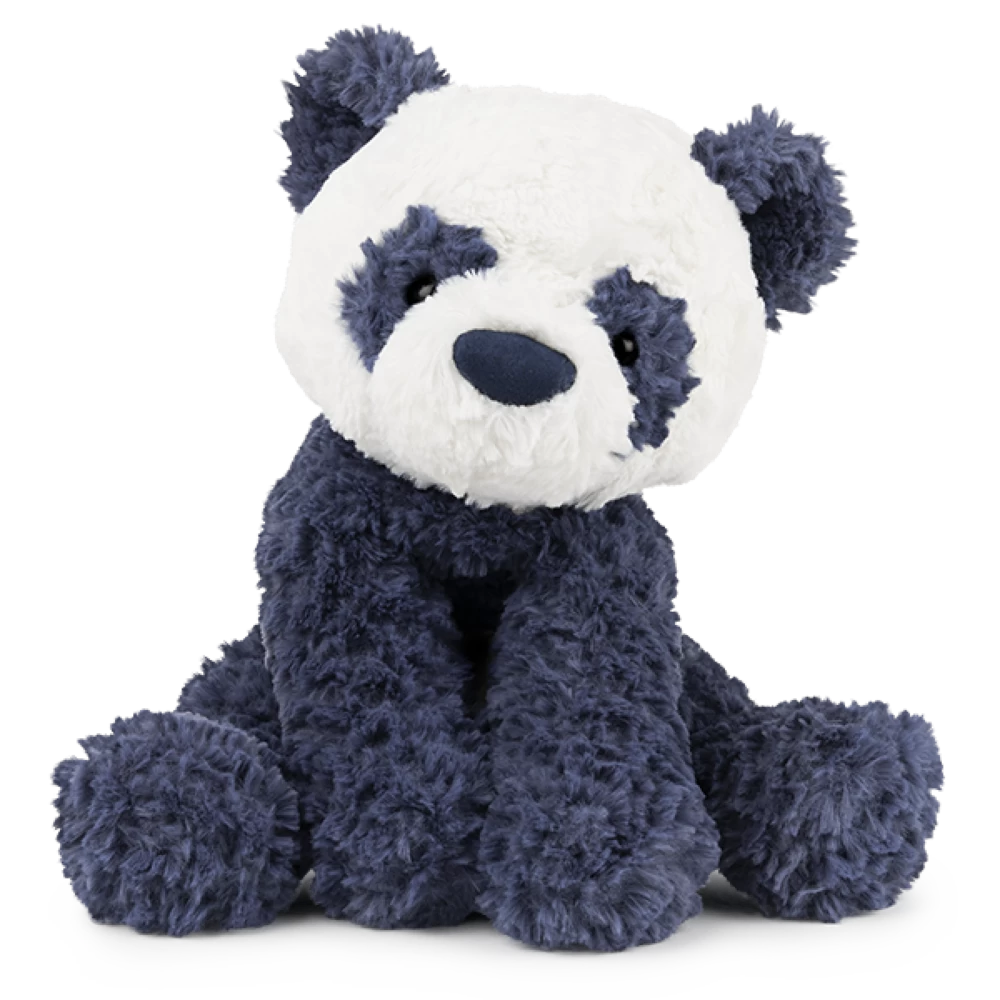 This Cozys Panda sits at 25cm and is crafted from premium blue and white fabric.