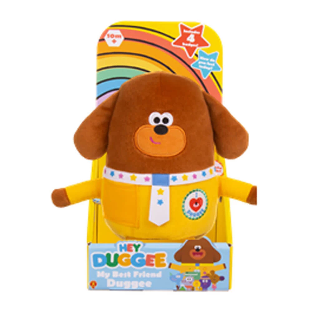 Soft and cuddly My Best Friend Duggee Soft Toy features 4 badges depicting emotions and a removable backpack to store badges.