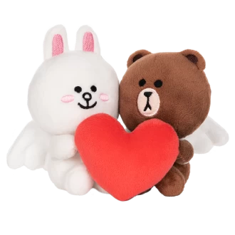 This cute Line Friends plush features Cony and Brown with cupid wings, holding onto a bright red love heart.