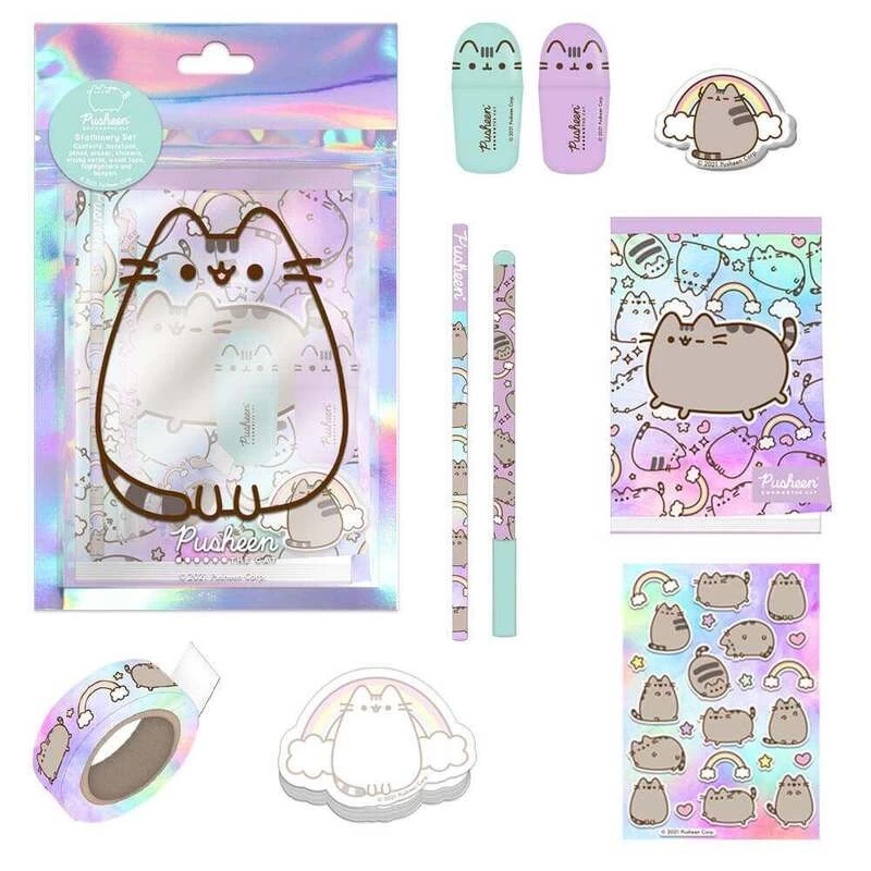 Pusheen is here to add some tie dye excitement to your Stationery Set. Includes 2 x highlighters (green & purple), a ballpen and pencil, lined notebook, sticker sheet, washi tape, sticky notes and eraser. Packaged in holographic pouch.