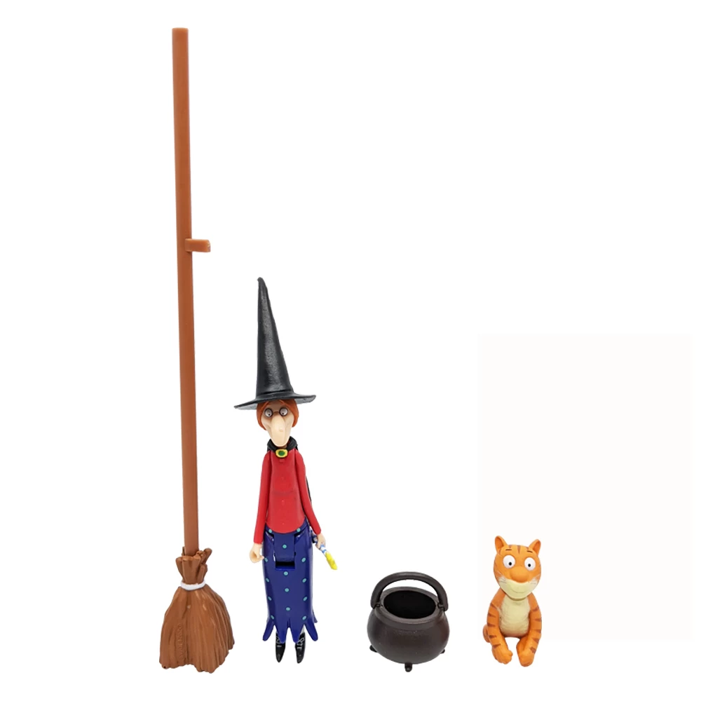 A beautifully detailed figurine twin pack featuring poseable Witch & Cat with additional broom and cauldron.