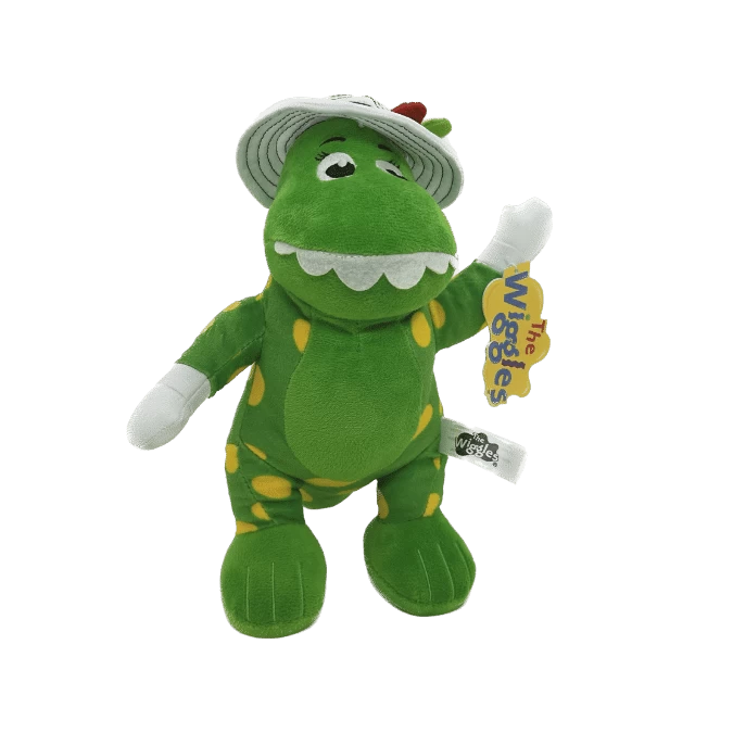 Dorothy the Dinosaur is the worlds favourite “rosasaur” (a dinosaur who eats roses). She is always seen wearing a white, floppy hat with a red rose in it. Dorothy loves singing, dancing, eating roses and making rosy tea, and she lives in a pink and purple house with a large rose garden in her backyard. This wonderfully soft and cute plush toys is covered in vibrant green fabric with Dorothy’s trademark yellow and white gloves. Your little one can now take her favourite Wiggles friend on her own Wiggles adventure. Official Licensed Product.